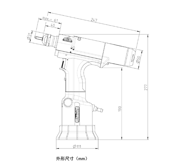 | 重量 | 最大行程 | 最大拉力 | 工作气压 | 空气软管接头 | 耗气量 |